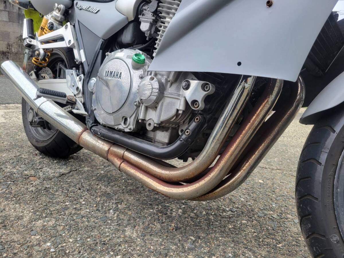 今年の4月末で車検切れ、バッテリー上がり、コケきず、マフラー社外品、ブレーキは固着無し、キャブ未清掃、タイヤ(フロント8割リヤ8割くらい)、セルモーターカバーのサビ、カスタム色々