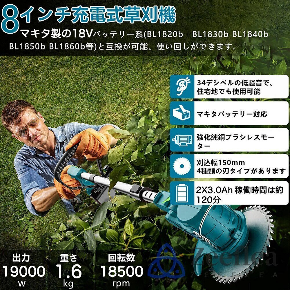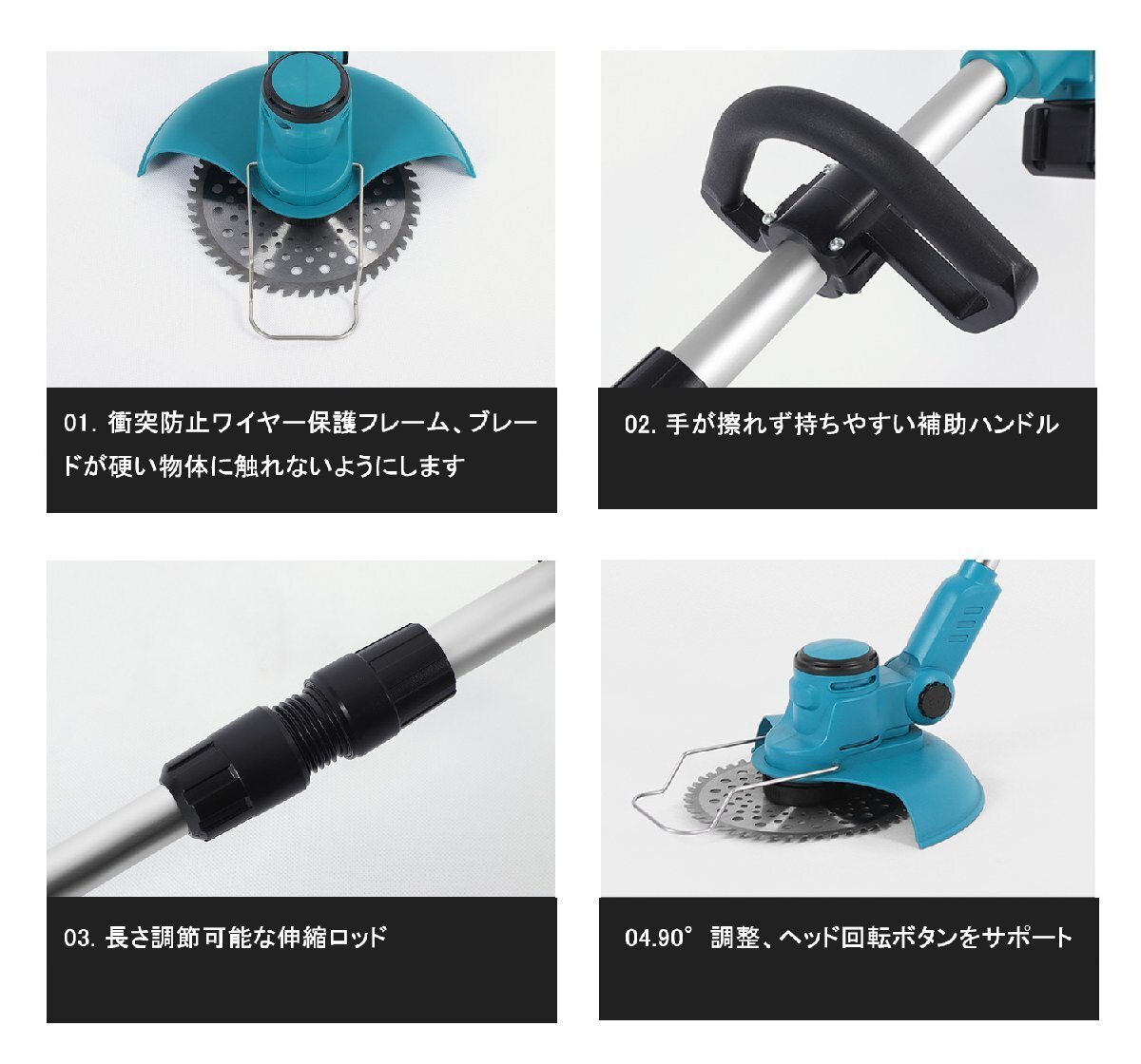 Product name: 8インチ草刈り機 充電式 草刈機 刈込幅200mm 長さ調整可能 18V対応 makita互換 セット品バラシ 刈払機 家庭用 除草 園芸機械 女性