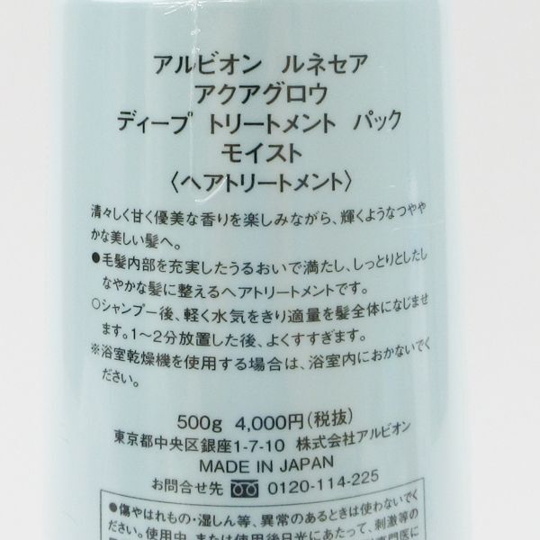 Product name: アルビオン ルネセア アクアグロウ ディープ トリートメント パック モイスト 500g 未開封 K27