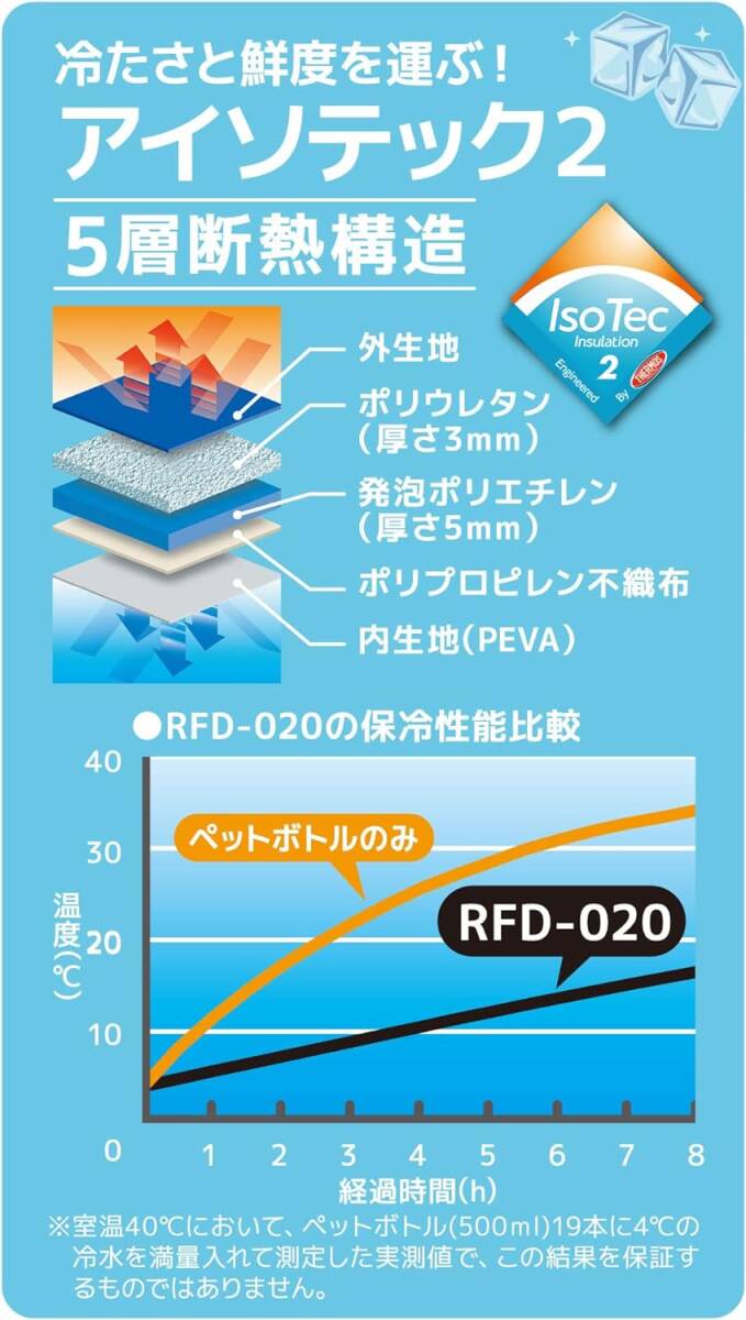 秘密は5層の断熱構造・複数の材質を組み合わせたアイソテック2の断熱構造が冷たさをキープ。