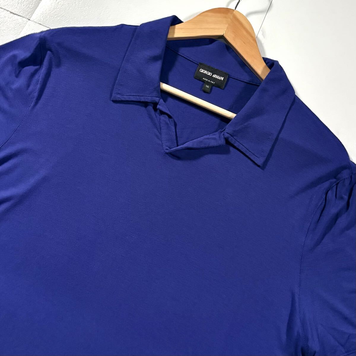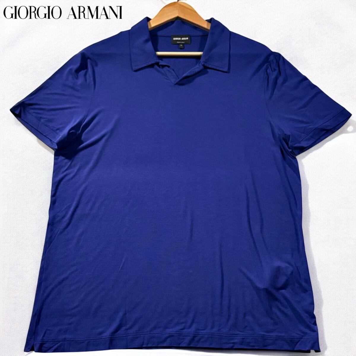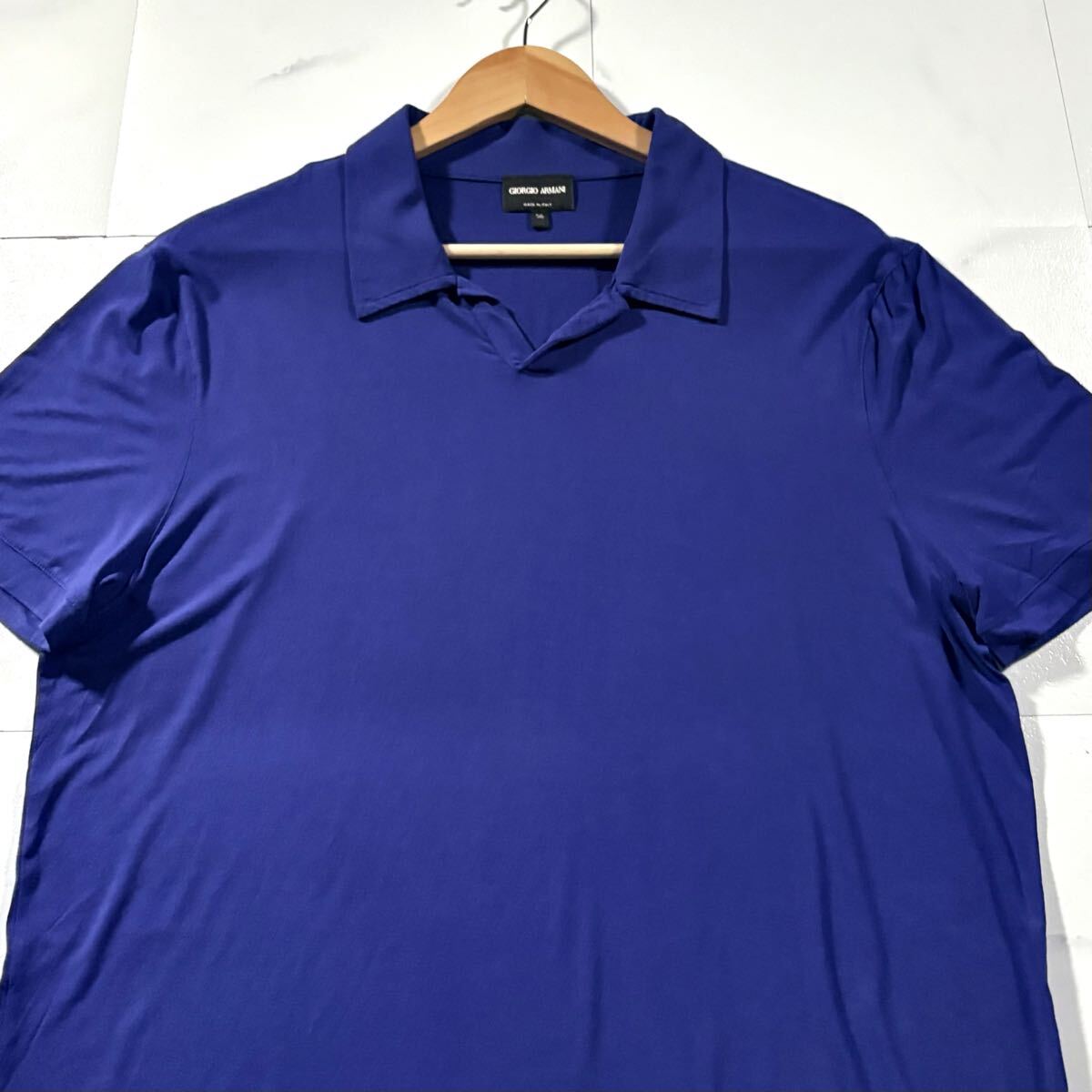 Product name: 極美品/3Lサイズ●艶色 ジョルジオ アルマーニ 半袖ポロシャツ Tシャツ 薄手 GIORGIO ARMANI ストレッチ ビスコース 開襟 ブルー XXL 56