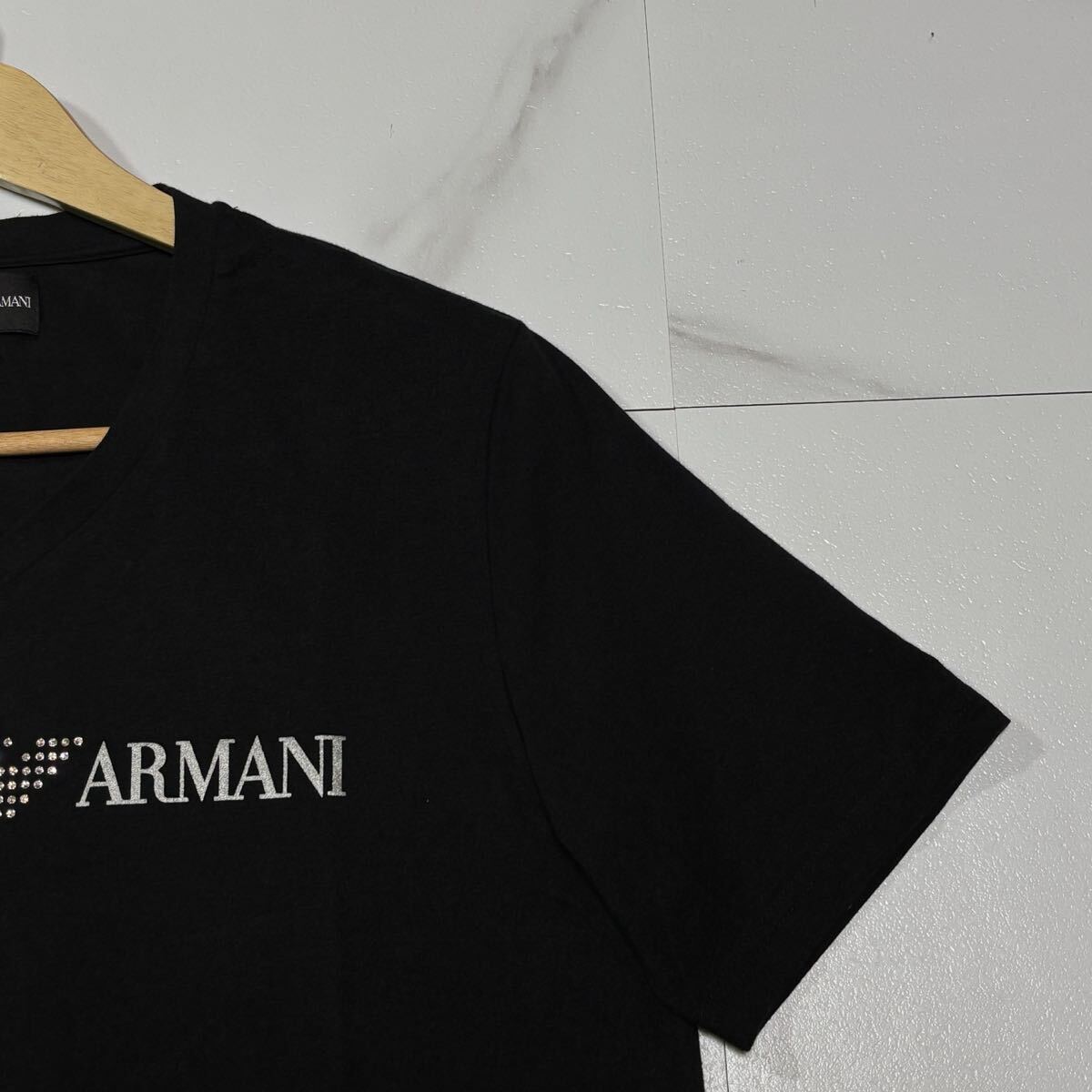 Product name: 美品/ XLサイズ EMPORIO ARMANI エンポリオアルマーニ Tシャツ 半袖 イーグルロゴ ラインストーン ロゴワッペン ブラック 黒