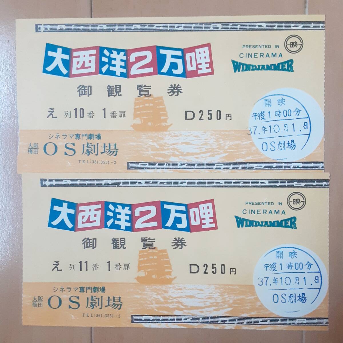起こる出来事を綴ったドキュメンタリー「大西洋二万哩」の映画チラシ(阪急友の会ご招待)&半券2枚になります。