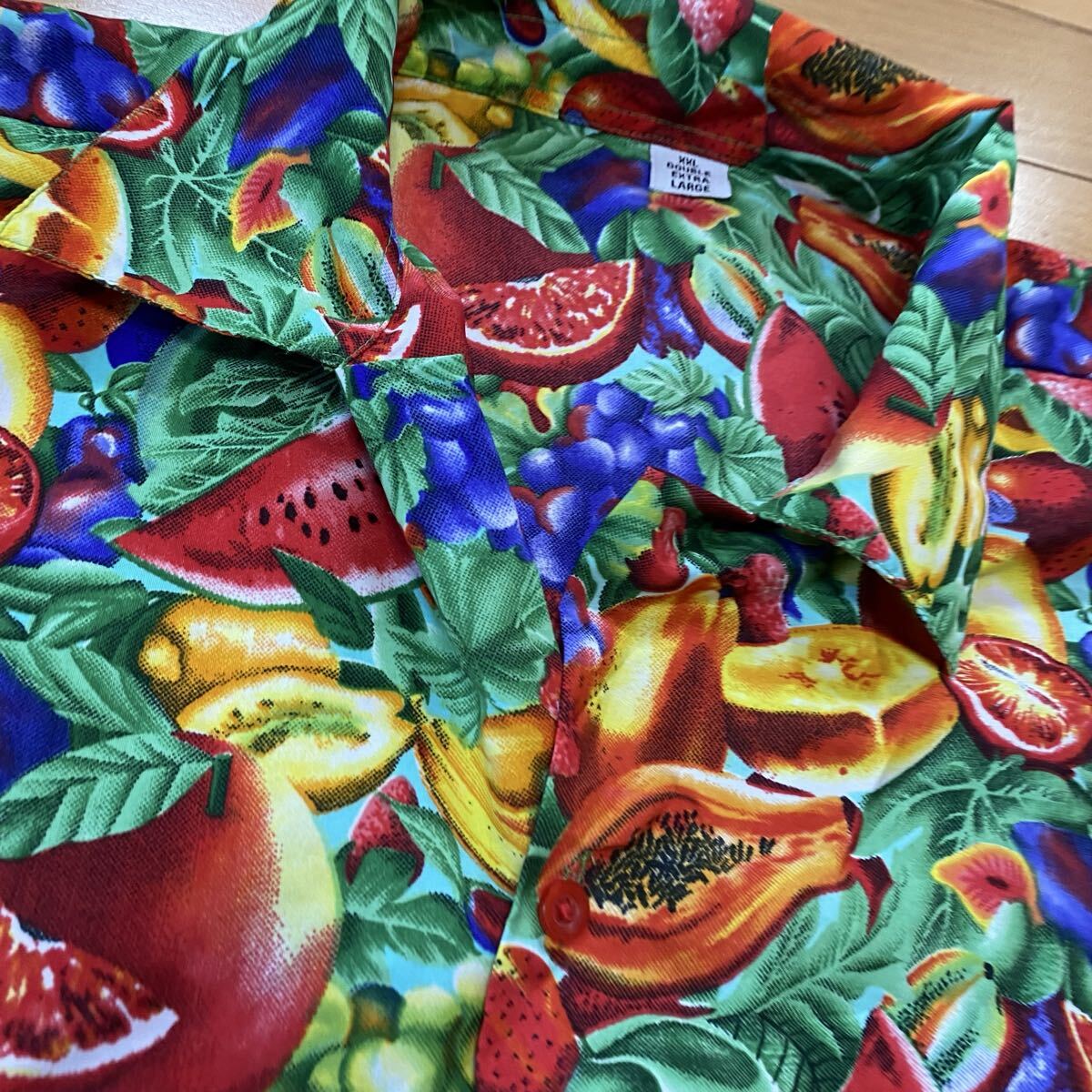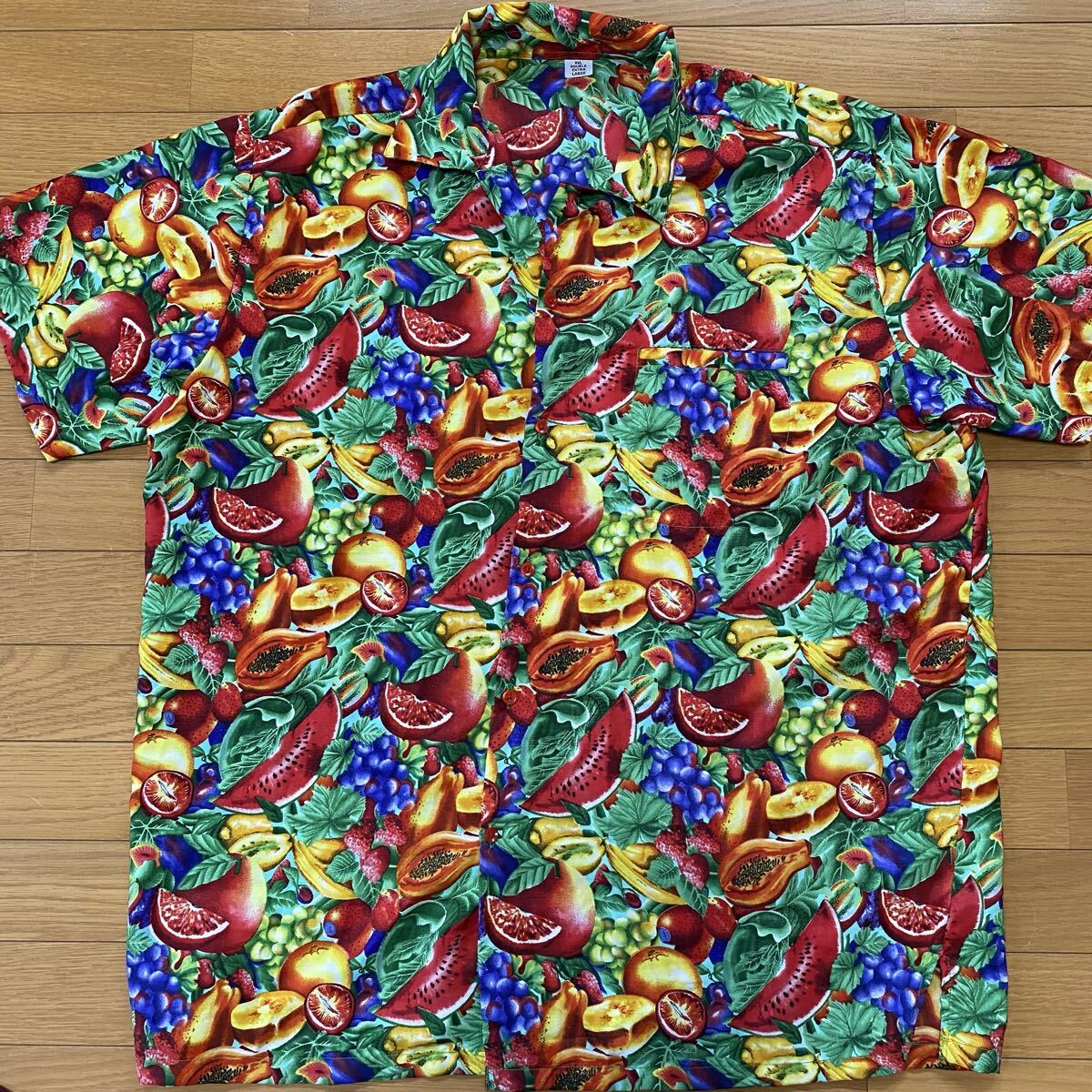 Product name: アロハシャツ 総柄 薄手 ビッグシルエット トロピカルフルーツ スイカ パパイヤ いちご バナナ ぶどう 半袖 夏物 大きいサイズ