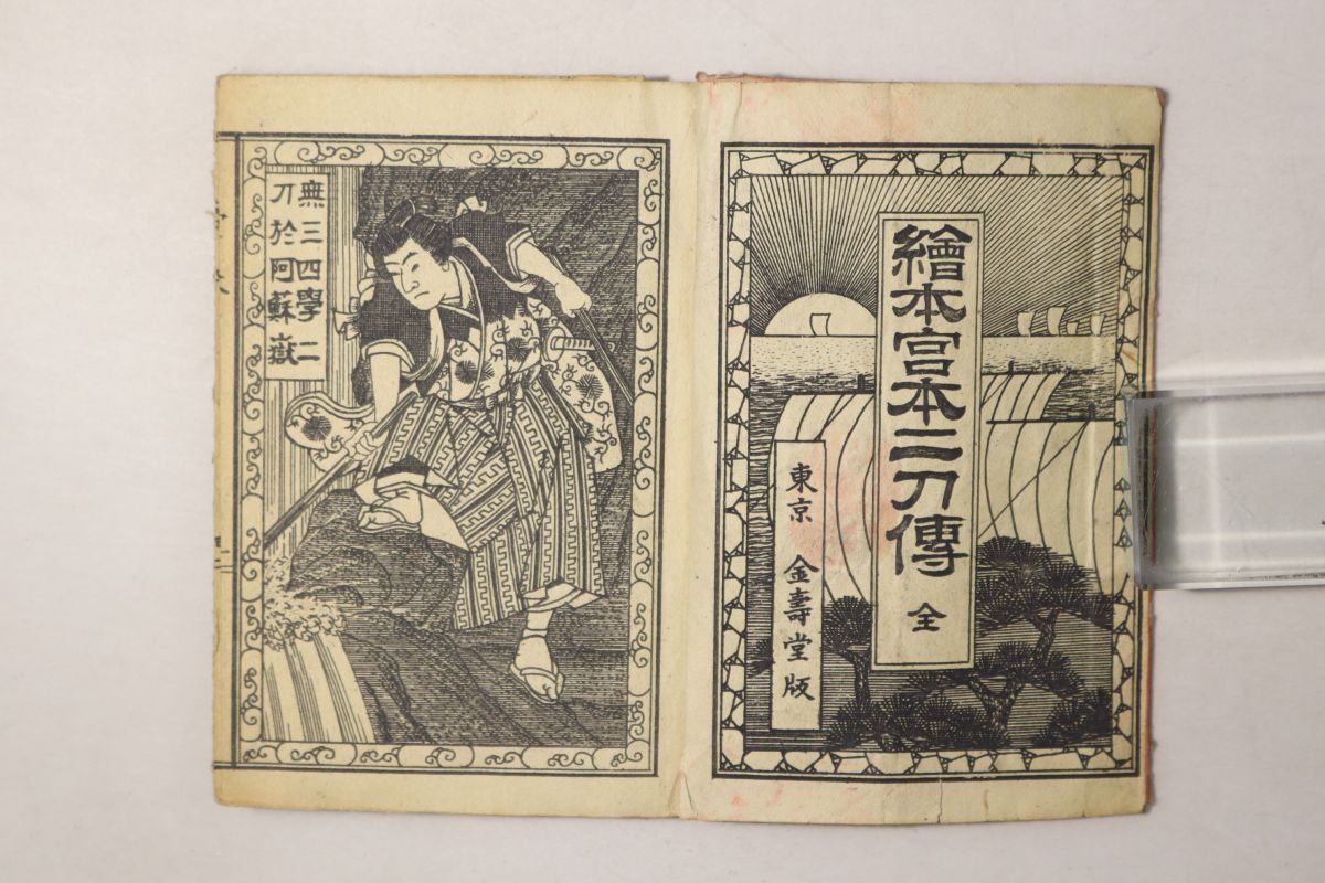 Product name: 「絵本宮本二刀伝 全」牧金之助 金寿堂 明治25年 1冊|絵本 宮本武蔵 佐々木小次郎 伝記 浮世絵師 銅版画 明治時代 古書 和本 古典籍 t11