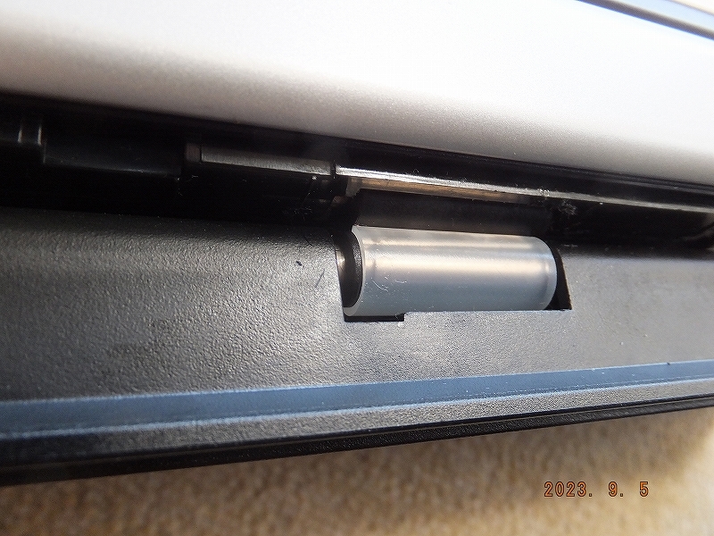 写真6枚目のようにスポンジが付いていた溝にラジオペンチで開いた部分を心棒に押し込むとローラーのずれを防止できます。