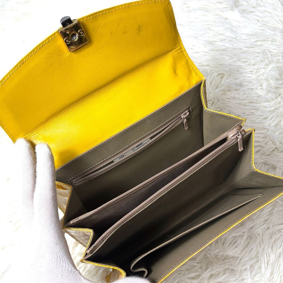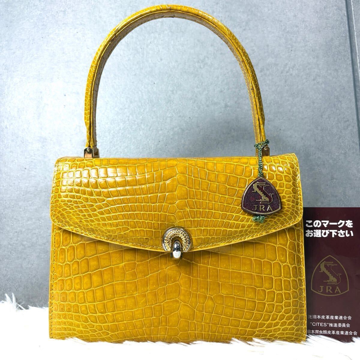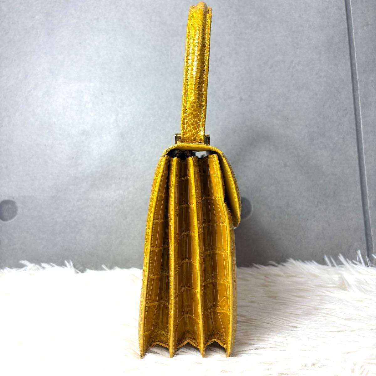 Product name: 美品/希少色 ●シャイニングクロコダイル ハンドバッグ センター取り イエロー 黄色 ゴールド金具 トップハンドル 自立型 レザー ワニ革 鰐