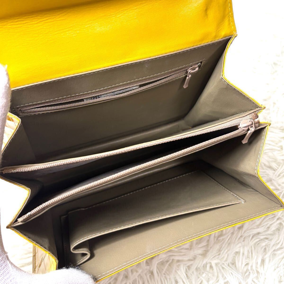 美品/希少色 ●シャイニングクロコダイル ハンドバッグ センター取り イエロー 黄色 ゴールド金具 トップハンドル 自立型 レザー ワニ革 鰐