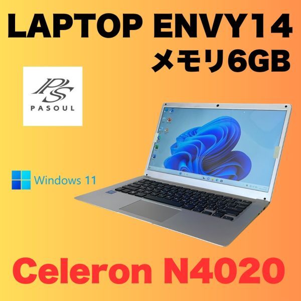 PASOUL LAPTOP ENVY14 Celeron N4020 CPU 6GB Windows11