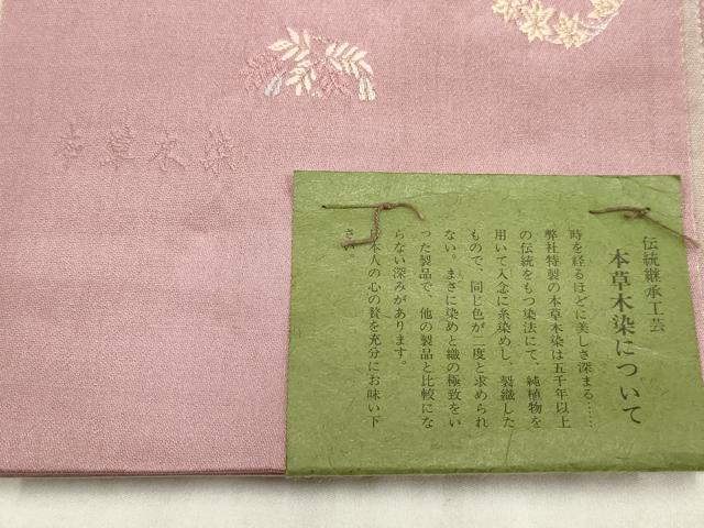 Product name: 平和屋着物▼西陣 広瀬織物 広裳佳苑 両面半幅帯 本草木染 花鳥丸文 金糸 証紙付き 正絹 逸品 AAAY4831wj