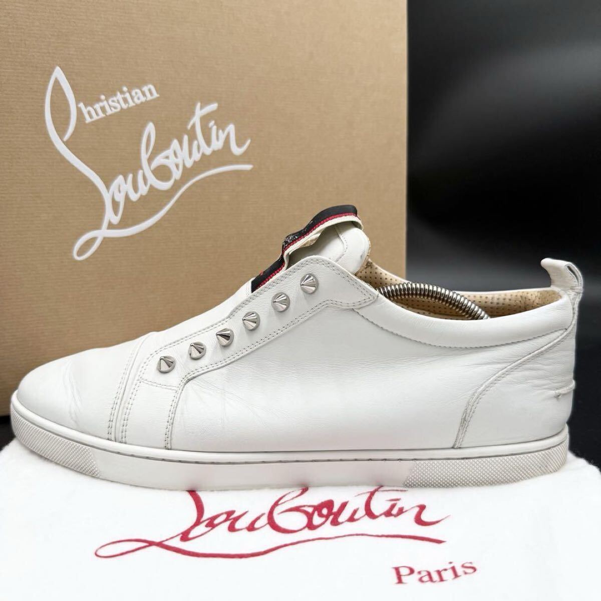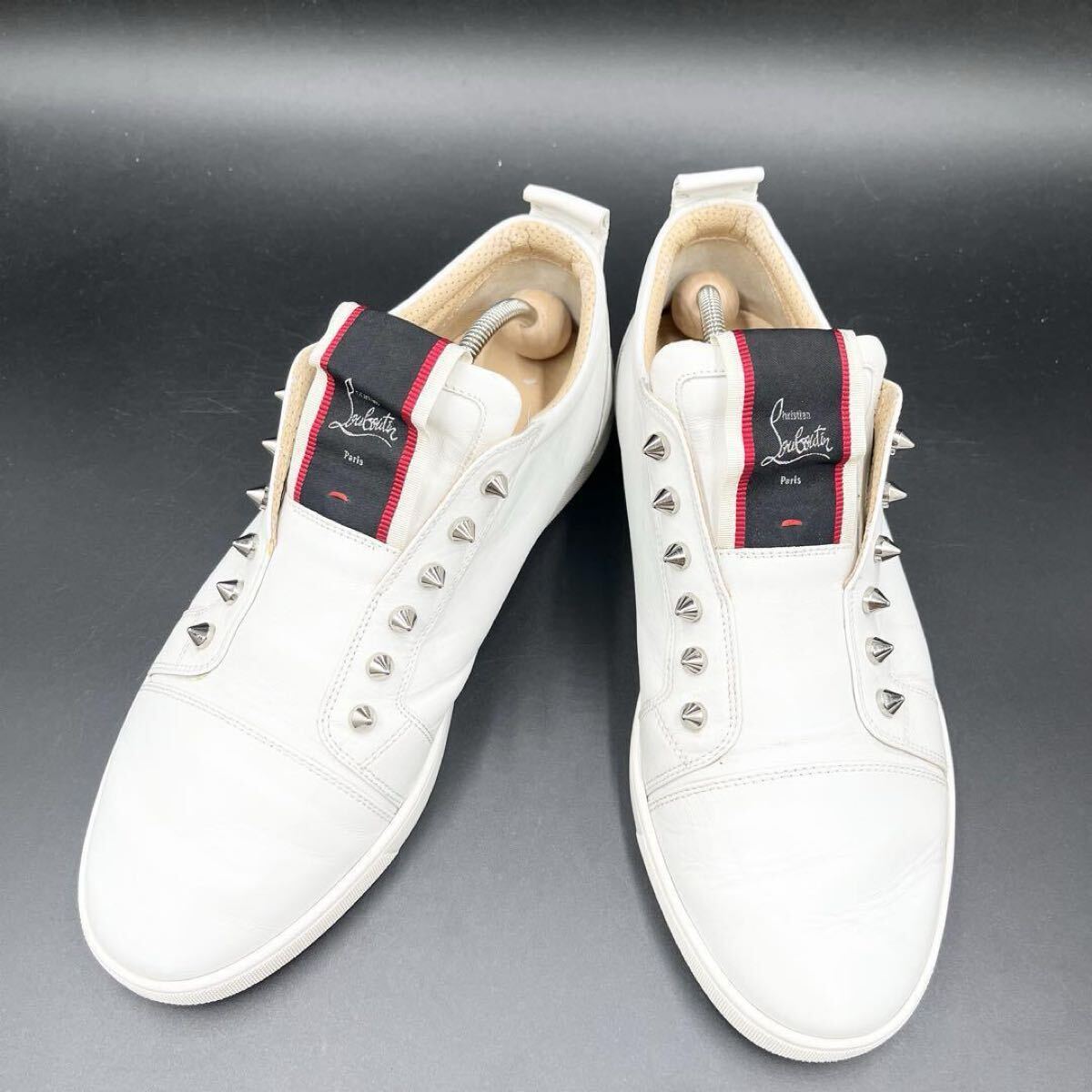 1円 【美品】 Christian Louboutin クリスチャンルブタン スパイクスタッズ メンズ スリッポン スニーカー シューズ 靴 ホワイト 白 27.5cm