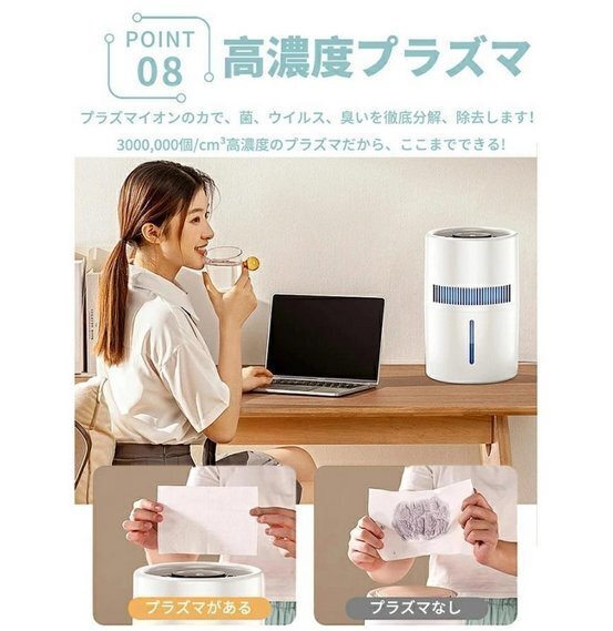 3,000,000個/?のイオン発生量を持つプラズマ発生器搭載、加湿しながら空気を浄化しリラックス空間へと導きます。