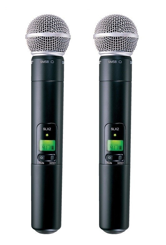 SHURE(シュア) ワイヤレスマイク SLX2/SM58(マイクヘッド) ×2本(ペア) 無線マイクロホン/赤外線リンク機能/充電池・乾電池両用 のUSED(中古)動作問題無になります。