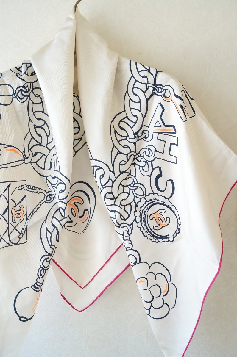 Product name: ★送料無料!CHANEL / シャネル *柄模様 スカーフ オフホワイト*古着のgplus広島 2508t1