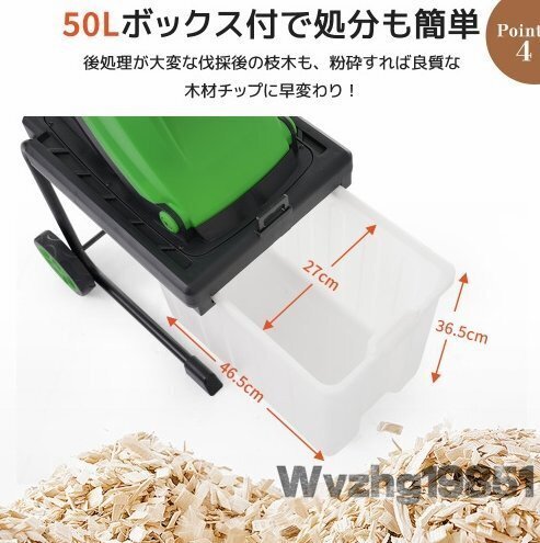 • 【50Lボックス付で処分も簡単】後処理が大変な伐採後の枝木も、粉砕すれば良質な木材チップに早変わり!