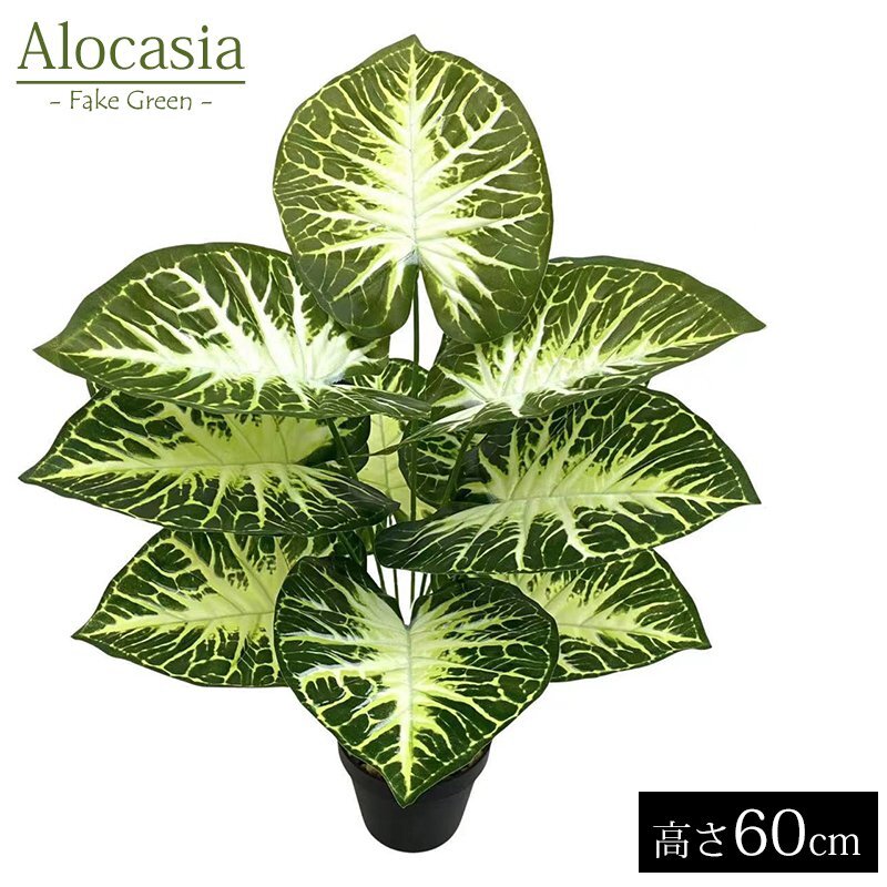 Product name: 人工観葉植物 アロカシア クワズイモ 葉12枚 フェイクグリーン 造花 枯れない 水やり不要 簡単 インテリア 飾り 鉢なし