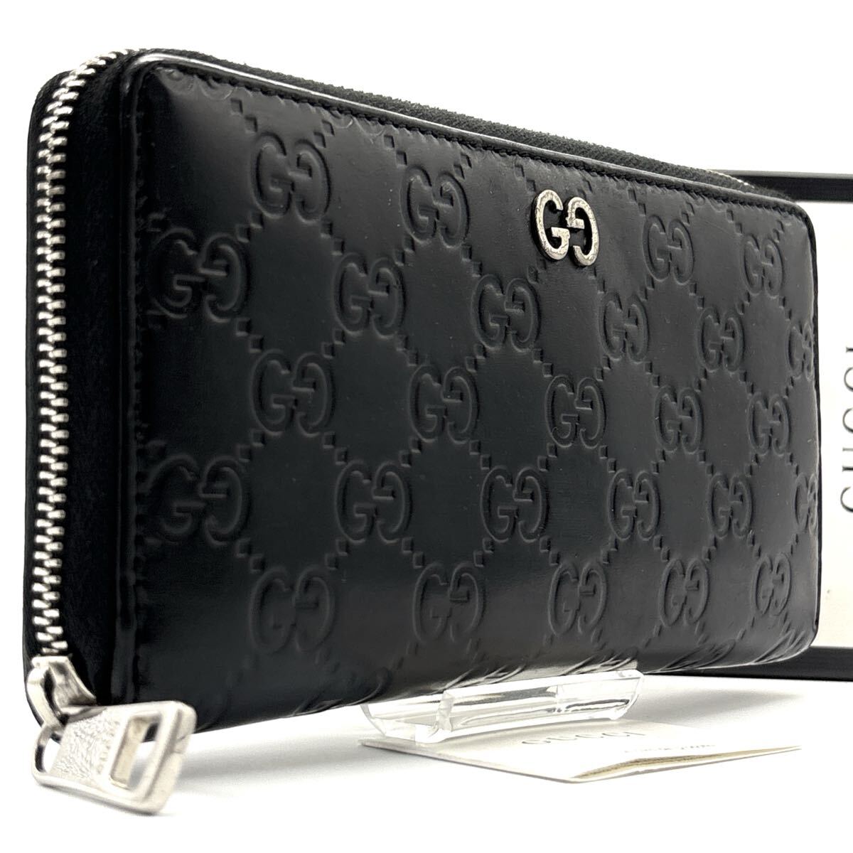 現行◆極美品◆GUCCI グッチ 長財布 GGスプリーム シマ インターロッキング ロングウォレット シルバーロゴ ブラック メンズ