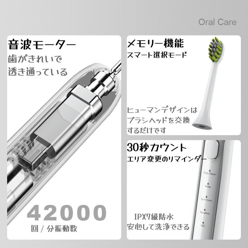 Product name: 電動歯ブラシ 音波歯ブラシ 替えブラシ2本付き usb充電式 IPX7防水 人気 携帯 強力 歯石除去 歯垢除去 虫歯予防 shw0046.bk