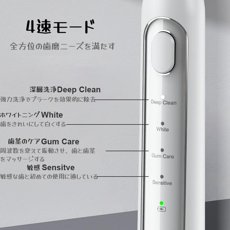 電動歯ブラシ 音波歯ブラシ 替えブラシ2本付き usb充電式 IPX7防水 人気 携帯 強力 歯石除去 歯垢除去 虫歯予防 shw0046.bk