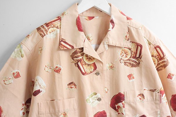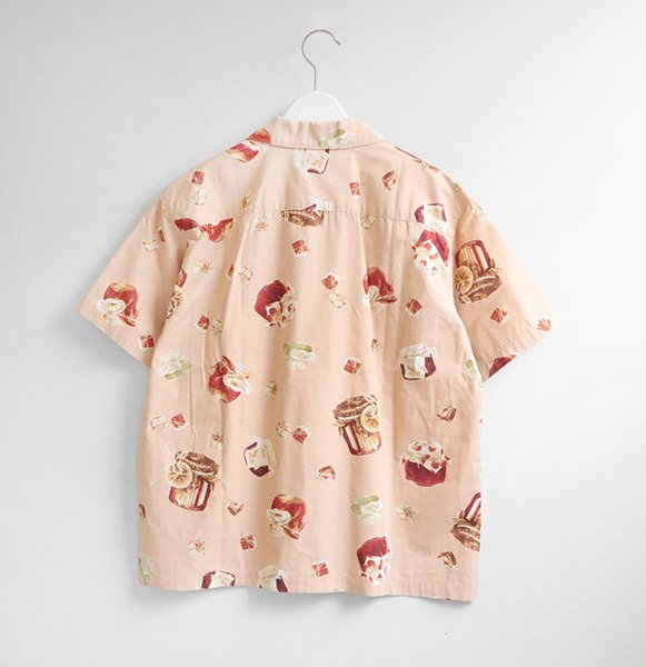 Product name: ワンダフルワールド (カネコイサオ) ジャム瓶柄 半袖シャツ くすみオレンジ ◆ コットン オープンカラー ブラウス WONDERFUL WORLD ◆G081