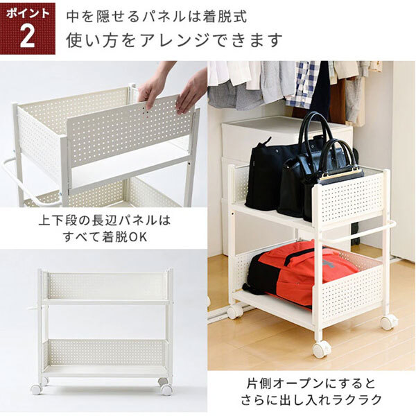 キャスター4個付き(直径50mm、うちストッパー付き2個)。