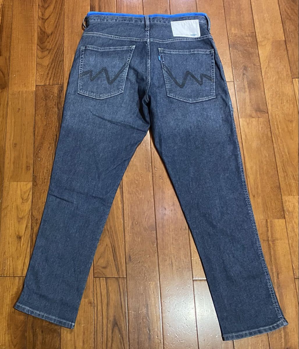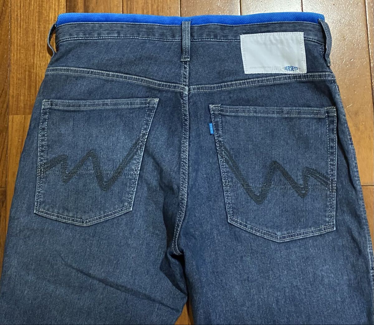 エドウィンのジャージーズ クール ミラノベイカーデニムパンツ、ERMB7Cです。色はインディゴブルーです。USEDですが状態は良いです(10段階中8程度)。生地はストレッチ入りで綿57%、和紙26%、ポリエステル16%、ポリウレタン1%、ウエストリブはポリエステル95%、ポリウレタン5%です。布パッチ、ジッパーフライ、裾はチェーンステッチです。正規品です((株)エドウイン、中国製)。サイズはMでウエストは重ねずに平置きで約81cm、ヒップ約106cm、股上約29cm、股下約74cm、股下15cmのふともも部分約52cm、裾まわり約34cm、重量約580gです。発送はゆうパケットポストになります。