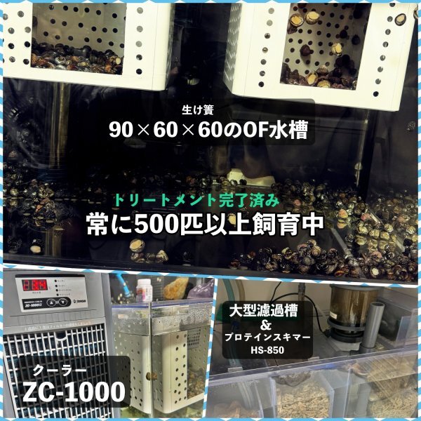 クーラーを使用していないファンのみの水槽には高水温でも弱りにくいスーパーシッタカをおすすめします。