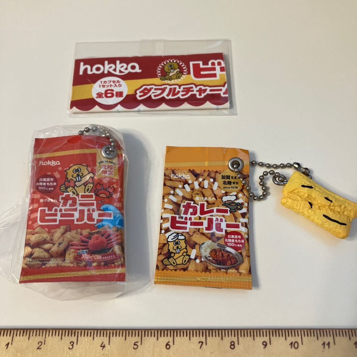 食玩 ミニチュア◆ビーバー ダブルチャームコレクション カニ ビーバー と カレービーバー 米菓 カプセルトイ ガチャ詰めポーチ