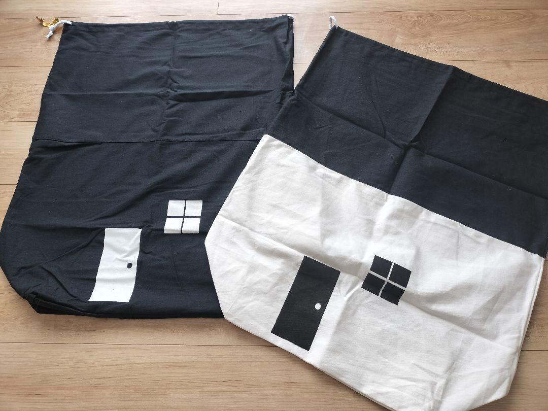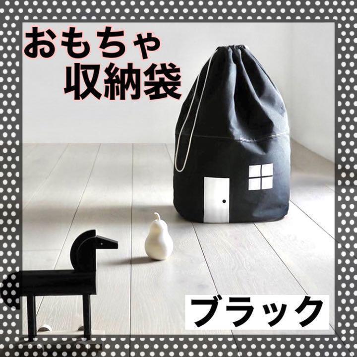 ストレージバック ナチュラル おもちゃ収納袋 布製 巾着 北欧風 ハウス型 黒
