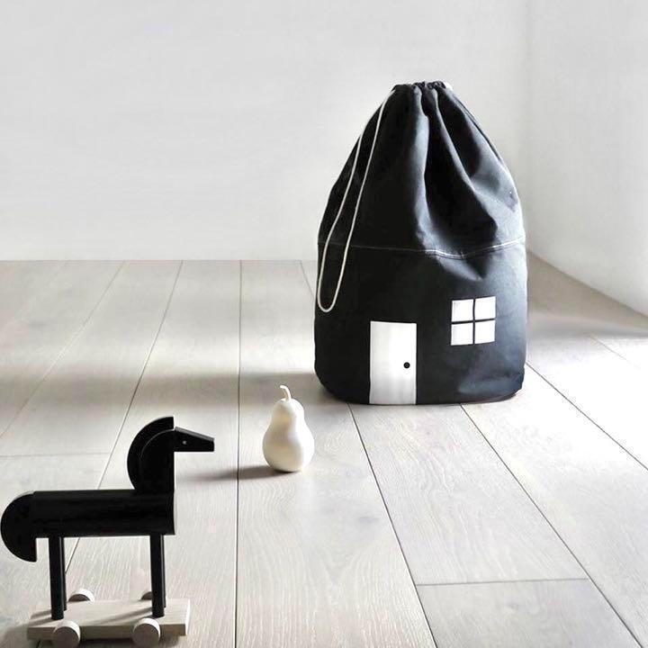 Product name: ストレージバック ナチュラル おもちゃ収納袋 布製 巾着 北欧風 ハウス型 黒