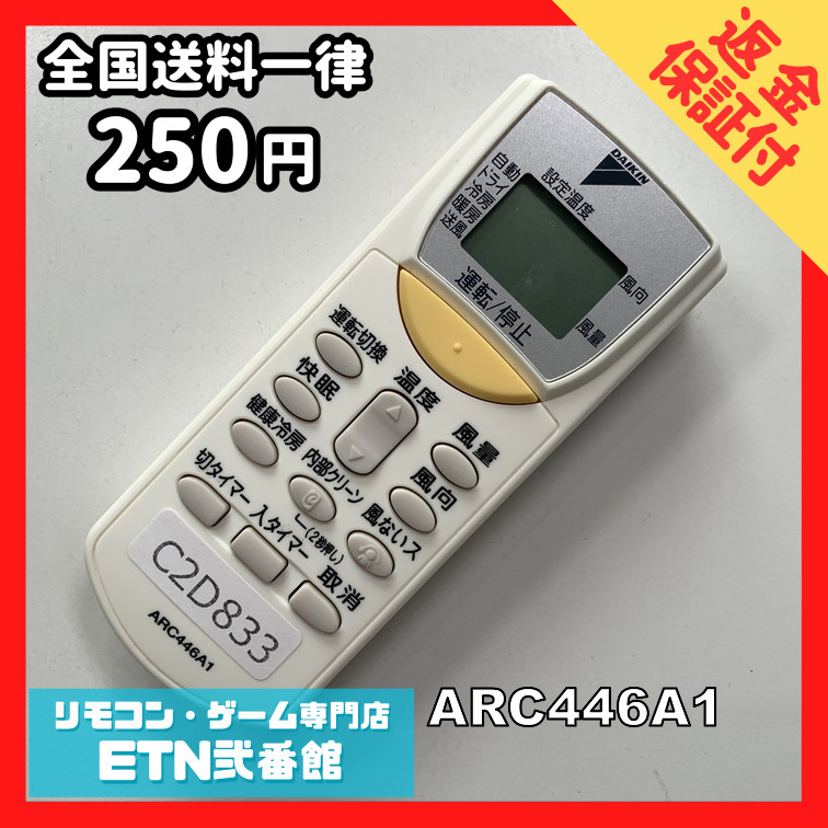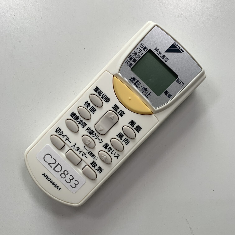 Product name: C2D833 【送料250円】エアコン リモコン / Daikin ダイキン ARC446A1 冷房 暖房 動作確認済み★即発送★