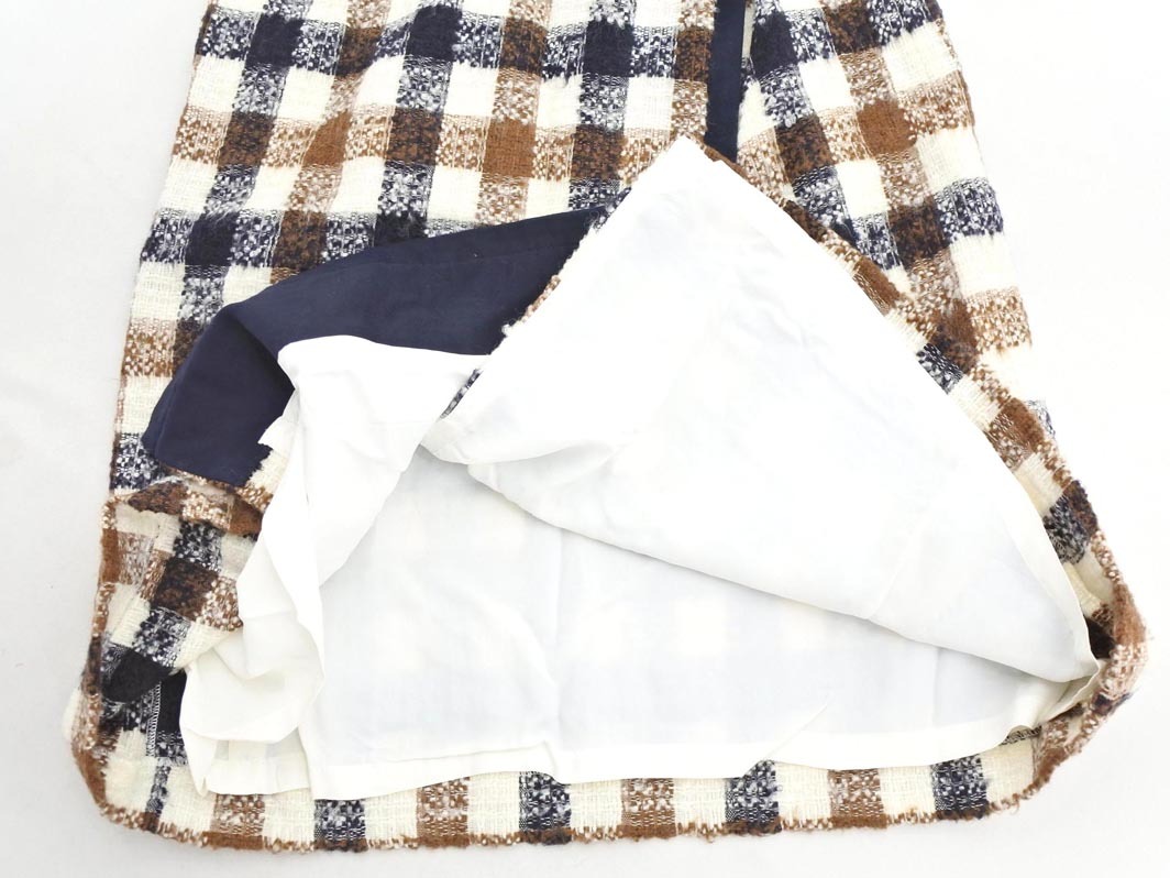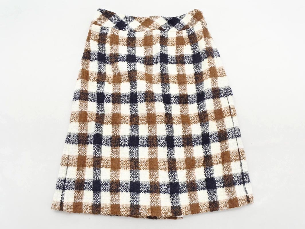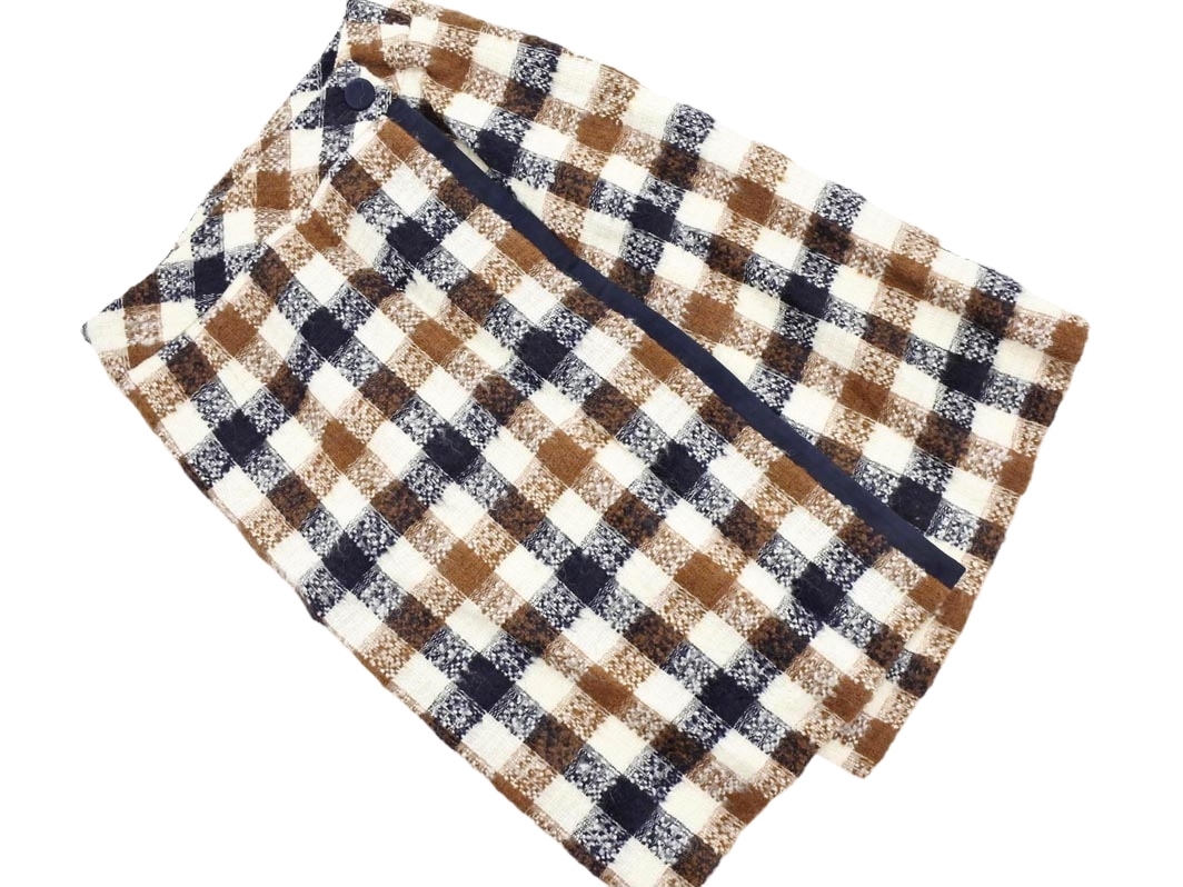 Product name: Aquascutum アクアスキュータム モヘア混 チェック 巻き ラップ スカート size8/紺x茶xオフホワイト ◇■ ☆ fib8 レディース