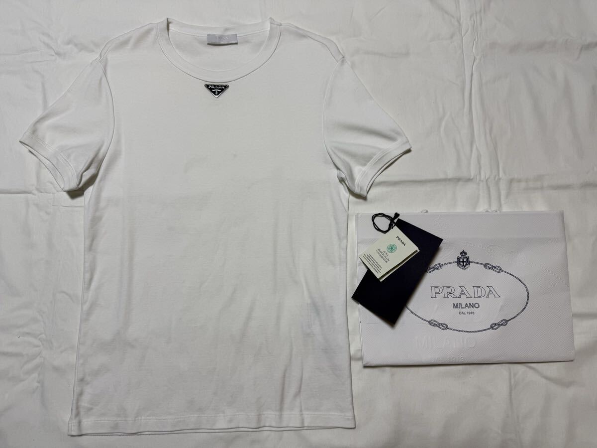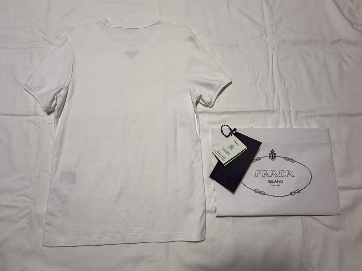 Product name: 確実正規品 現行品 海外モデル PRADA プラダ トライアングルロゴ Tシャツ ホワイト M コットン ジャージ メタル プレート Vネック