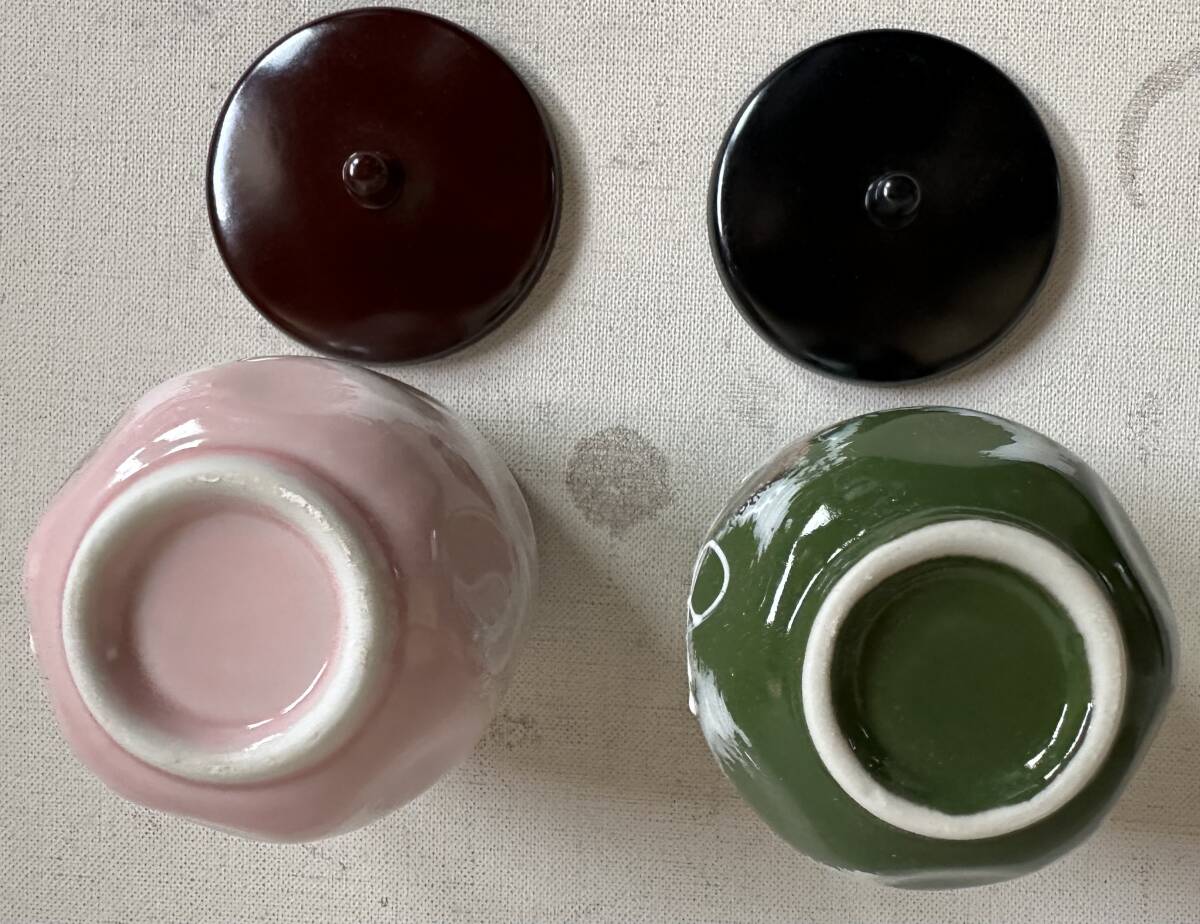 男鹿半島 夫婦湯呑み茶碗のお土産品 未使用品です。サイズ:全高8.5cm。直径6.5cm。陶器製。蓋付き。専用箱付き。お土産品の保管品です。ご理解頂ける方のみノークレーム・ノーリターンでお願いします。