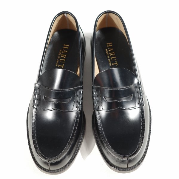 新品1円~★定価1.2万 HARUTA ハルタ 日本製 牛革レザー 定番 コインローファーシューズ 24.5cm EEE 黒 ブラック ガラス加工 ◆4674◆
