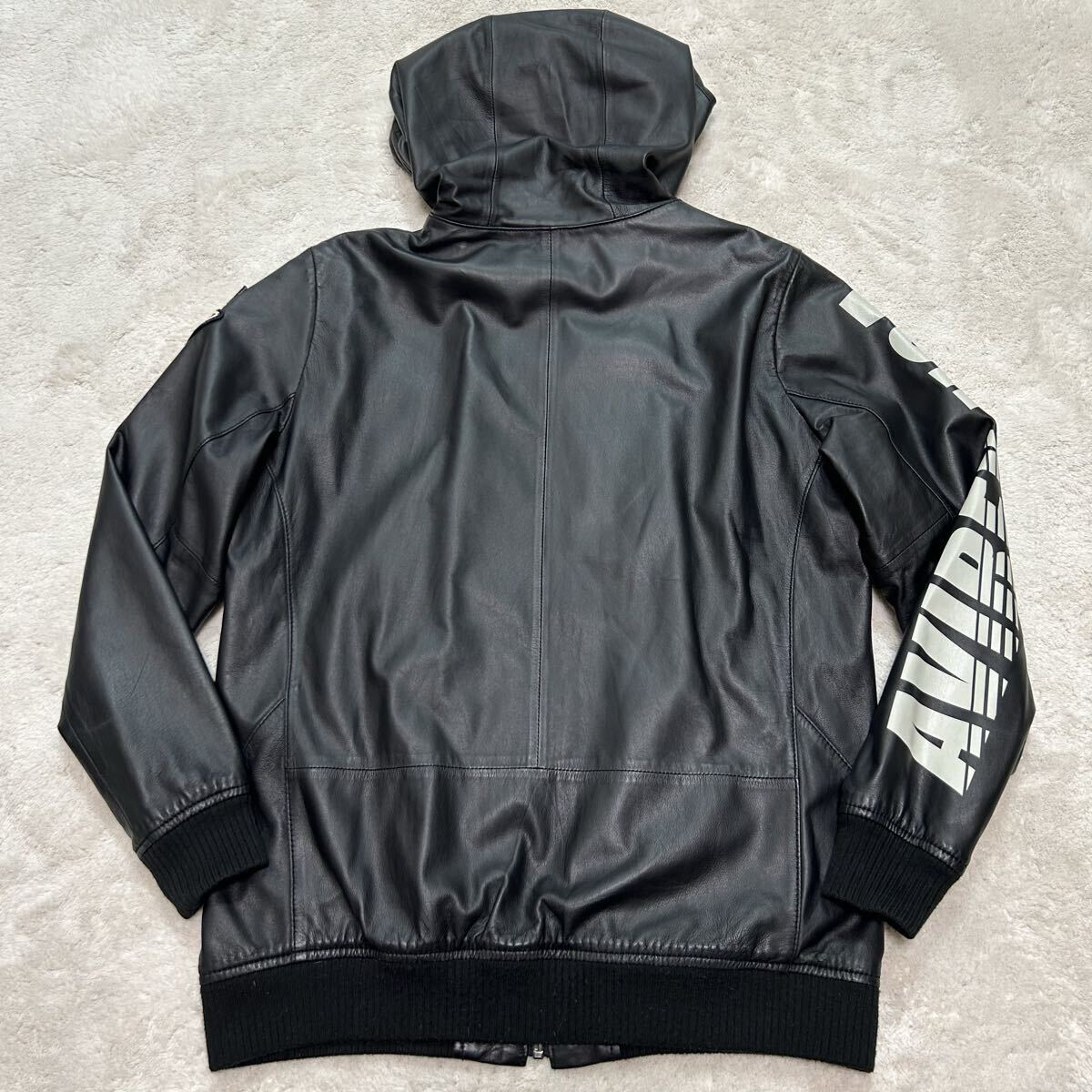 Product name: 極美品!/希少!/M~L相当●アヴィレックス AVIREX 極上ラムレザー 羊革 ジップアップパーカー フード ジャケット ワッペン 本革 ブルゾン 黒