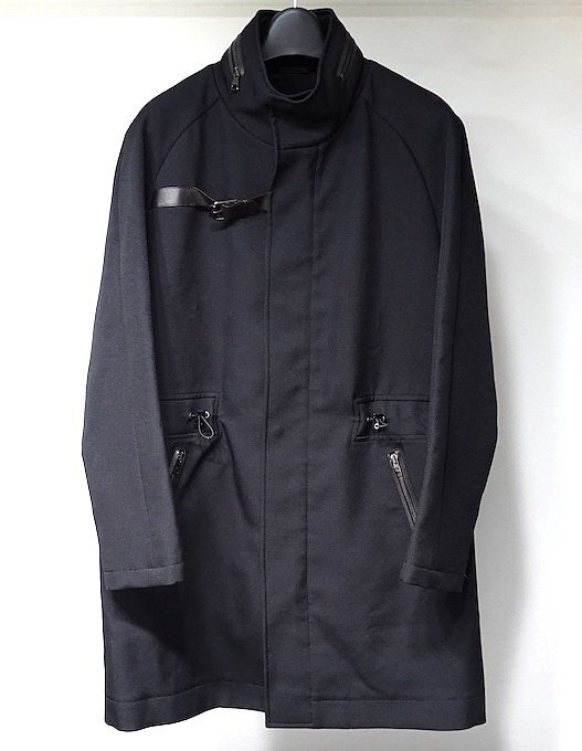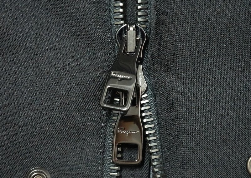 Product name: 極美品 Salvatole Ferragamo フェラガモ レザーディテール スタンドカラー ダブルジップアップコート ブラック ヴァージンウール メンズ 48