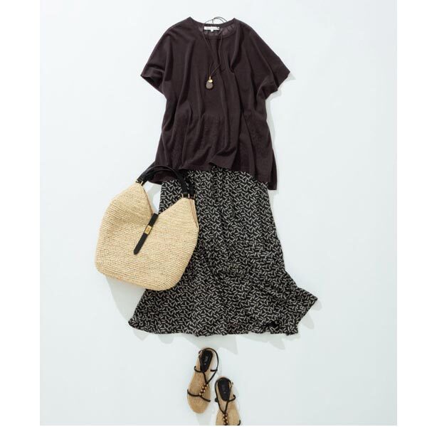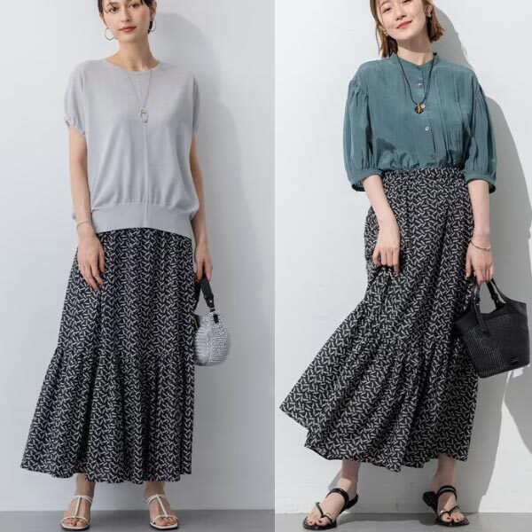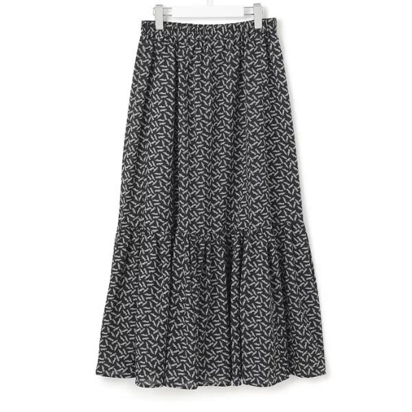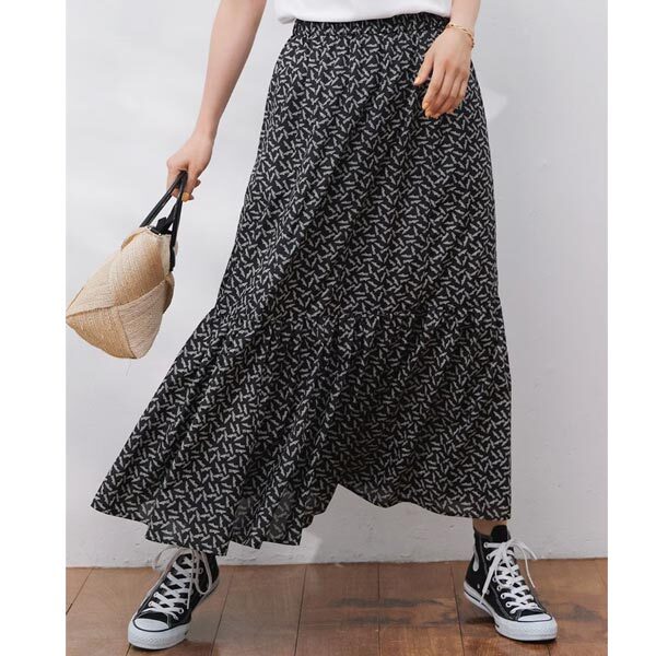 細やかなプリントで上品な印象のティアードスカート