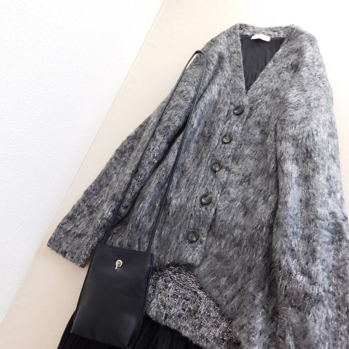 グレーカラーのミックスの起毛カーディガンがかわいいです。