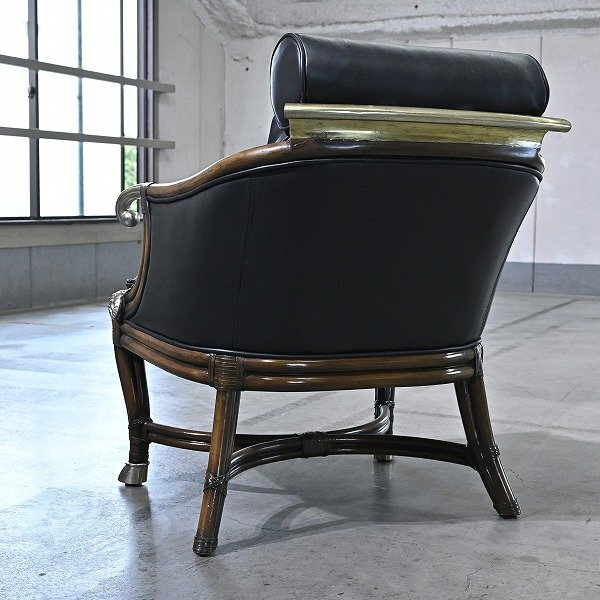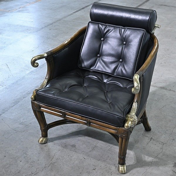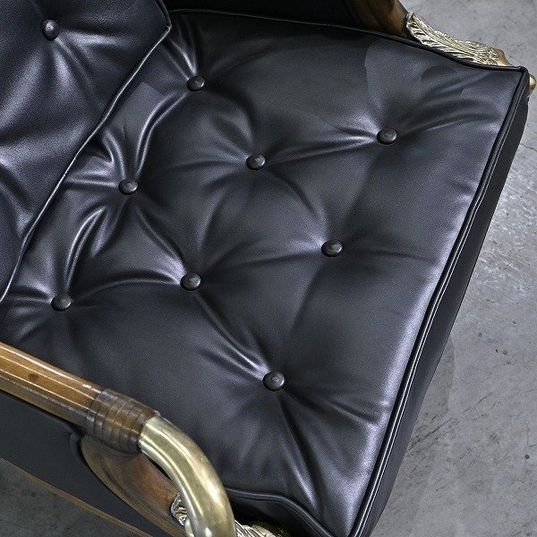 最大の特徴は、アームレストにあしらわれた真鍮製の羊の頭部装飾。
