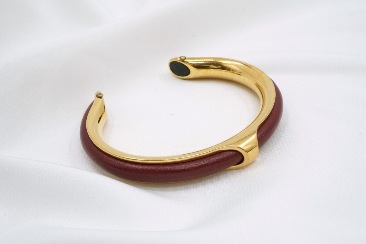 Product name: エルメス ヴィンテージ バングル ブレスレット レザー メタル アクセサリー ボルドー HERMES 4013j