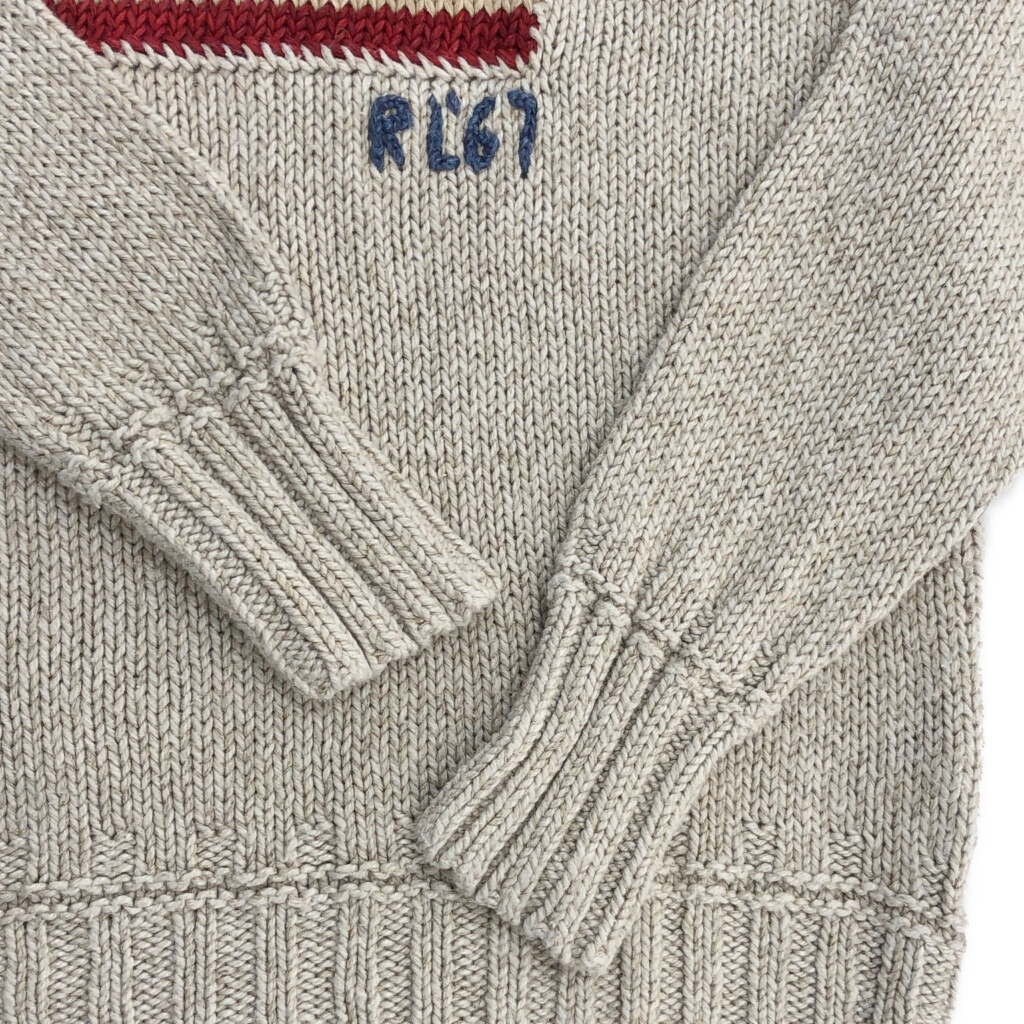 Product name: Polo by Ralph Lauren ポロ ラルフローレン 星条旗 リネンニット セーター ベージュ(メンズ M)中古 古着 V1408