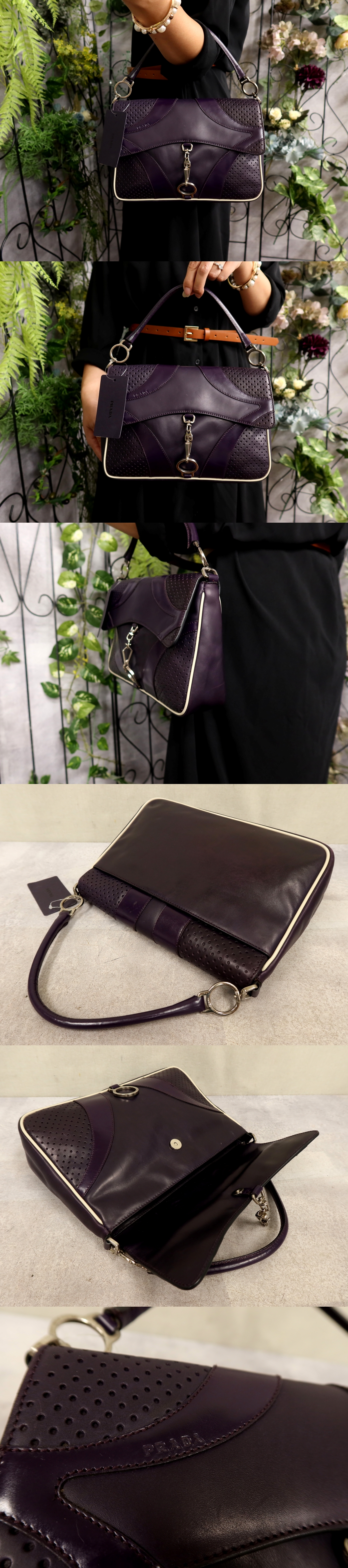 Product name: ●超美品●PRADA プラダ●パンチング●ロゴ型押し●カーフ レザー 本革●ハンド バッグ●パープル●シルバー金具●イタリア製●Js61432