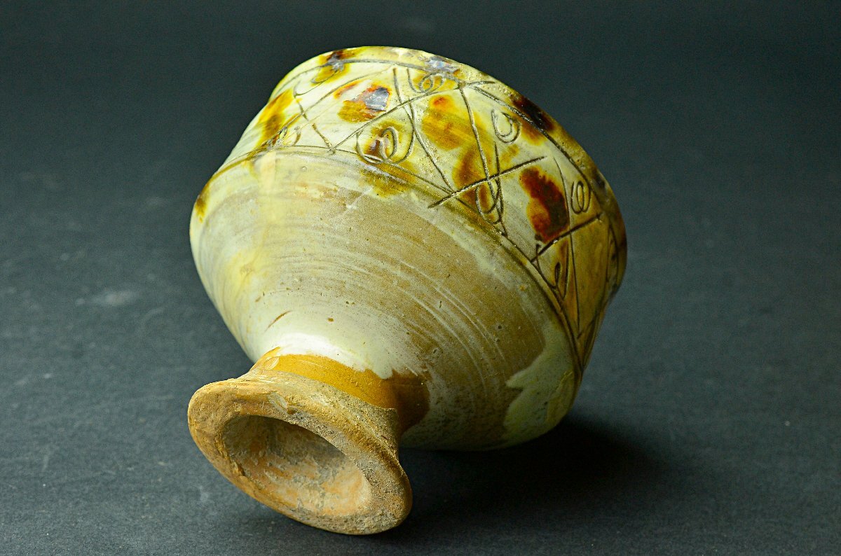 古代ギリシャ キプロス ビザンチン陶器幾何学紋三彩碗 13~14世紀頃