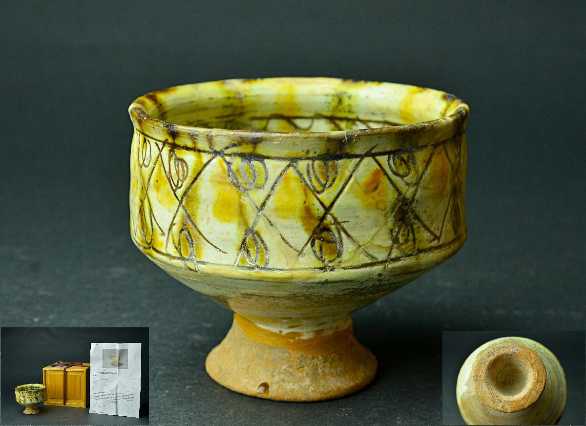 Product name: 【オリエント放出】古代ギリシャ キプロス ビザンチン陶器幾何学紋三彩碗 13~14世紀頃・桐箱付属・同手資料付属 ★YBローマ25Y903
