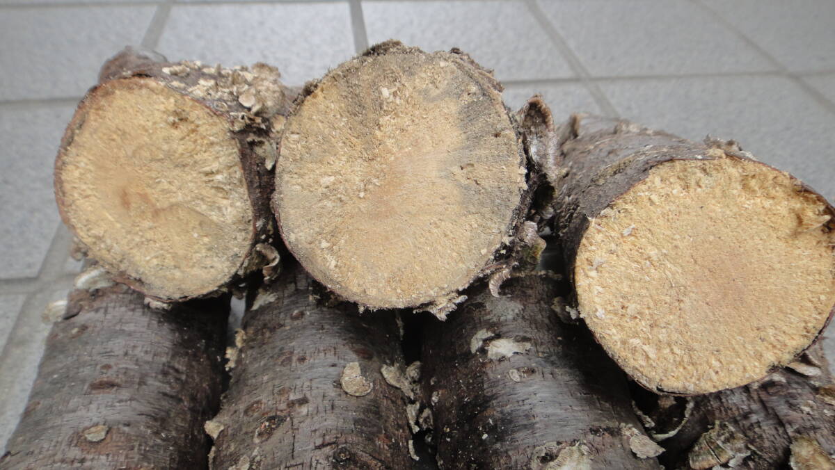 岐阜県産天然菌植原木・粉吹き状態の乾燥サクラ材の皮付き産卵木になります。