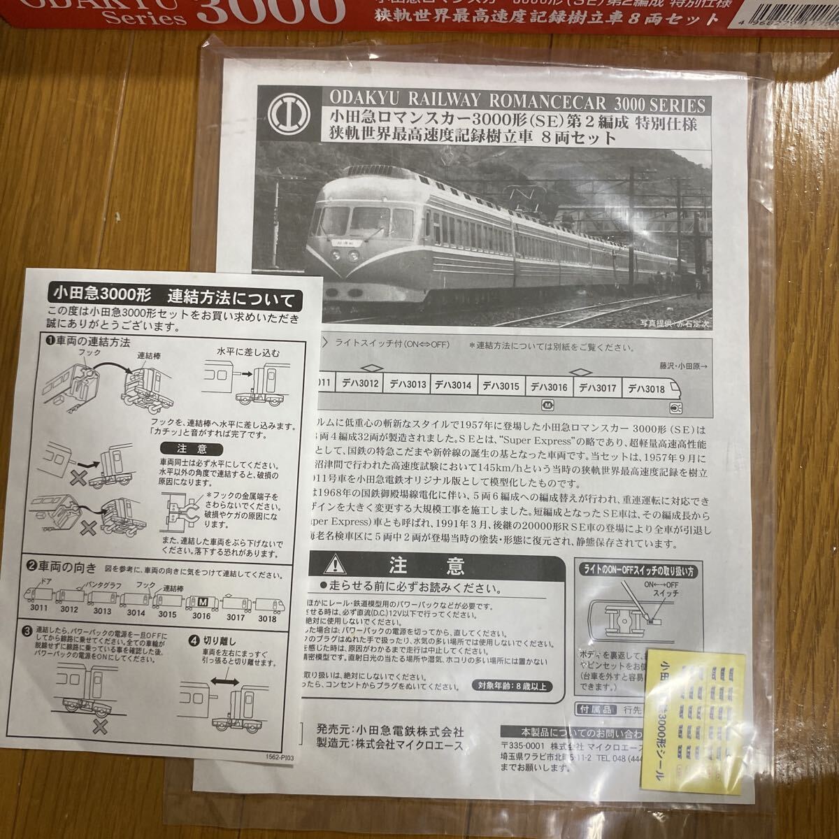 Product name: Nゲージ 限定品 マイクロエース  小田急ロマンスカー3000形(SE) 第2編成 特別仕様 狭軌世界最高速度記録樹立車 8両セット 冊子付き