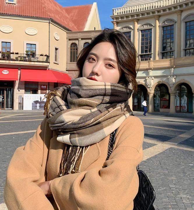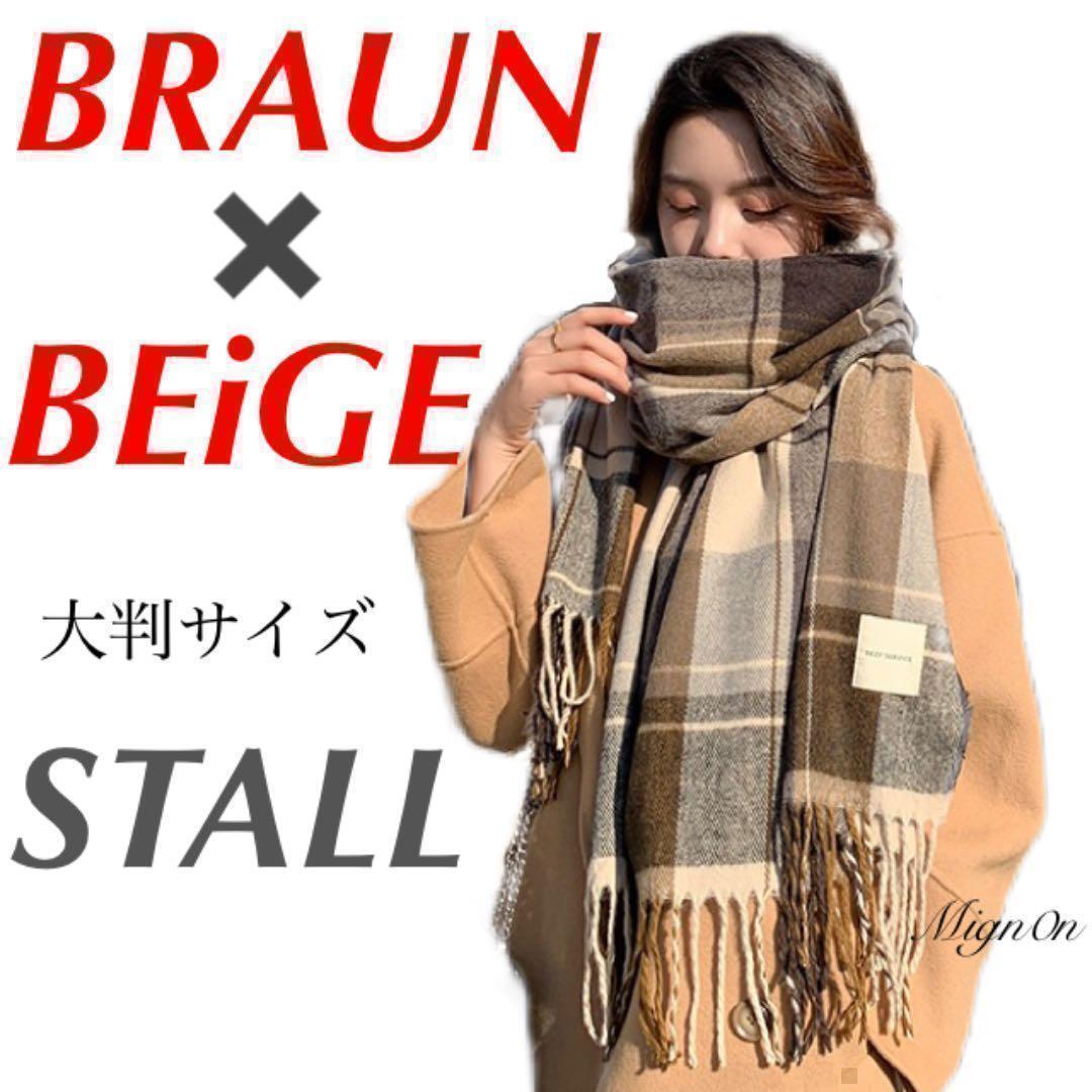大活躍 ストール【ブラウン】チェック マフラー 膝掛け ブランケット 47
