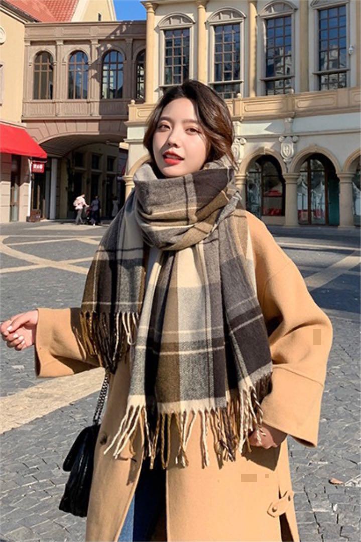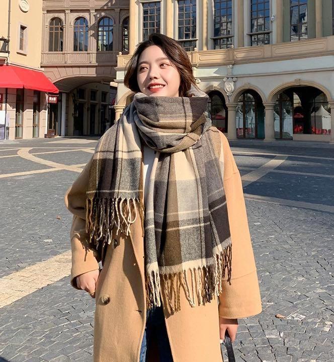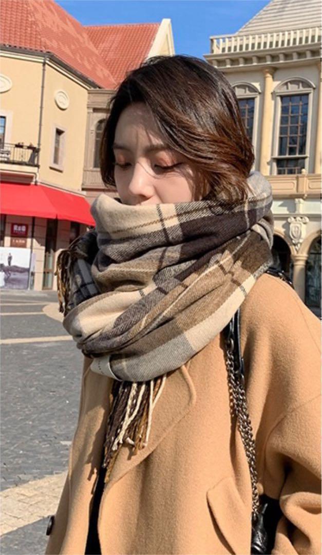 Product name: 大活躍 ストール【ブラウン】チェック マフラー 膝掛け ブランケット 47