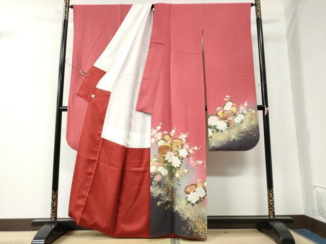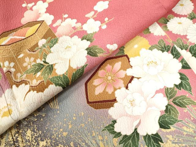 Product name: 平和屋着物●豪華振袖・長襦袢セット 貝桶牡丹花文 暈し染め 金彩 鈴乃屋扱い 正絹 逸品 CAAW8519yc